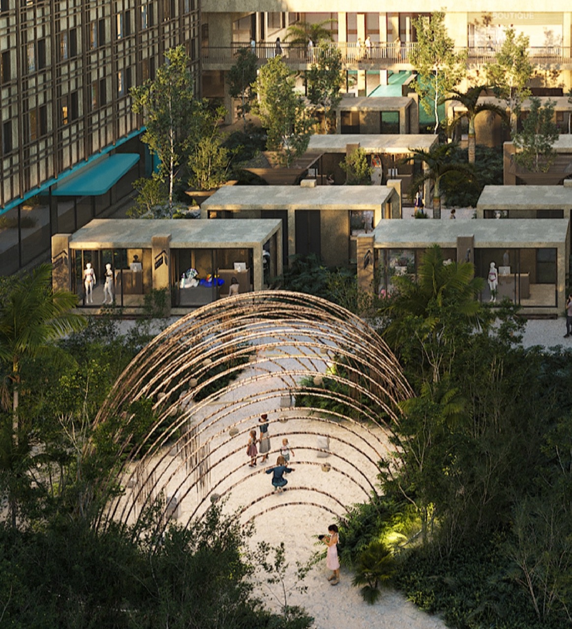 4,300 rentable square meters with an open design in a distinctive and sustainable environment, generating meaningful experiences and connections that combine the Tulum lifestyle with shopping, dining, entertainment, and services, all in one place.