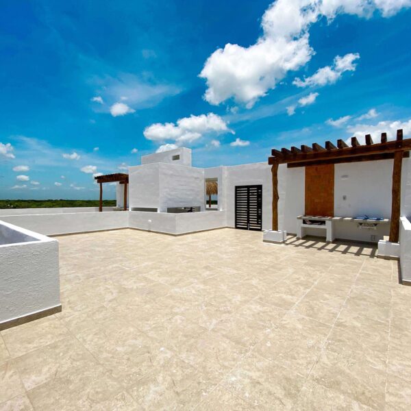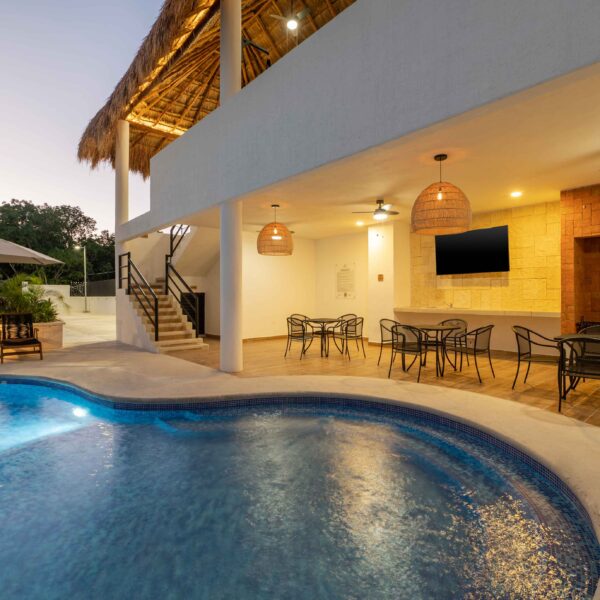 Exclusivity and proximity to the lush jungle of the Riviera Maya in a private residential area with only 30 apartments and over 10 exclusive amenities such as a pool, clubhouse, gym, and security booth.