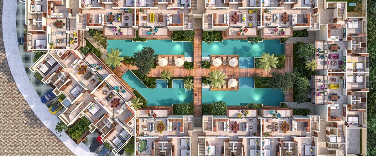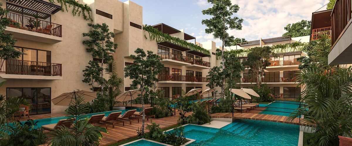 66 departamentos en 4 plantas, 1 y 2 recámaras en el corazón de Tulum, en Aldea Zama.